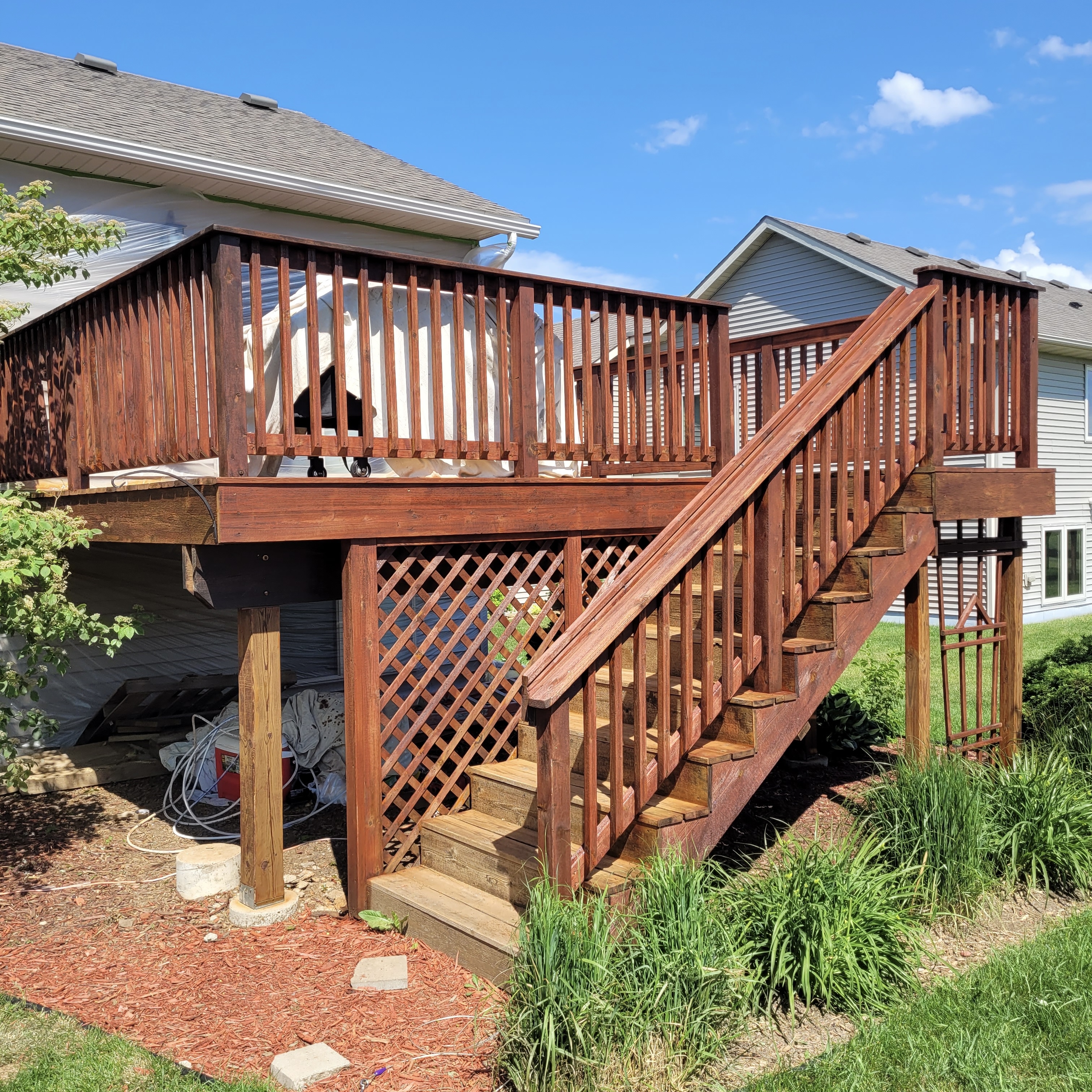 This deck got the care it deserves. After a thorough pressure wash and light sanding, we applied two coats of Australian Timber Oil. Not only does it highlight the natural beauty of the wood, but it also seals and protects for long-lasting durability.